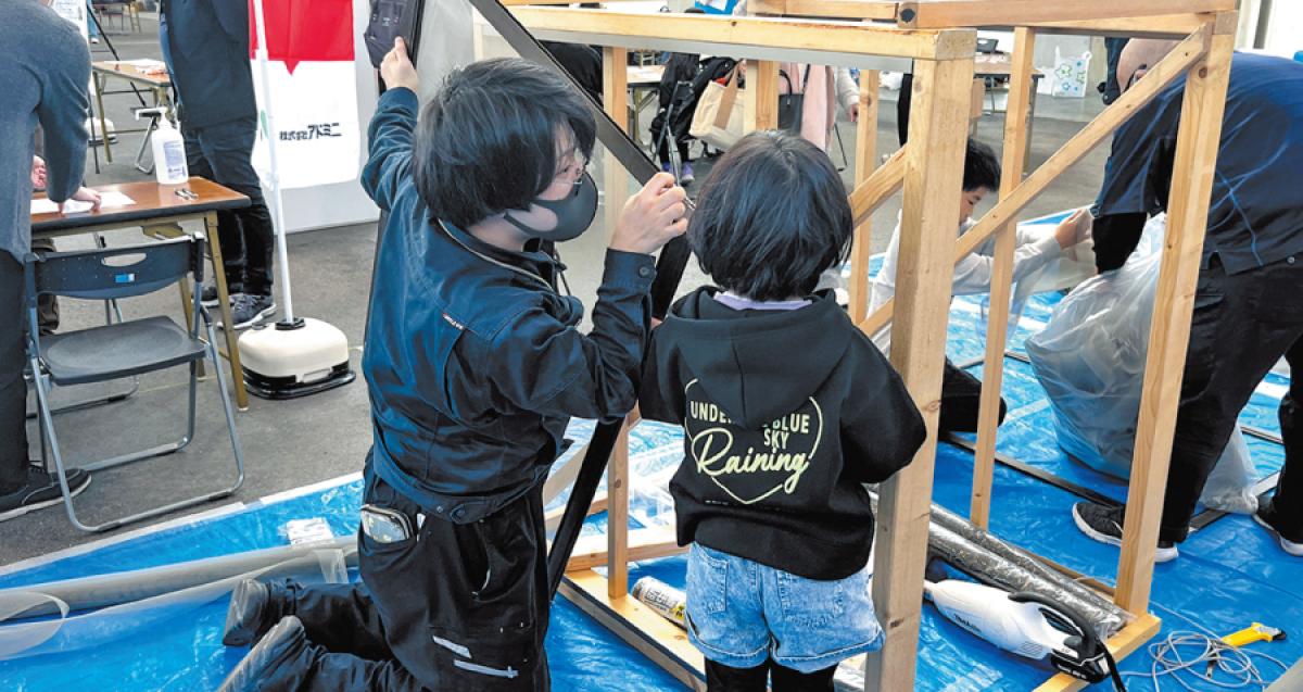 アドミニの体験ブースでは、初出展した2019年からの人気企画である「網戸の張り替え体験」に加え、新企画「消火訓練」が登場。きっかけは、アドミニが業務の一環で取引先企業様と実施した消火訓練で、そのときの参加者は全員大人でしたが、「消化器を初めて触った」「防災意識が高まった」と大好評。「子ども向けに内容をブラッシュアップすれば、ご家族で防災を考える有意義な時間を提供できるのではないか」との想いから新企画が完成しました。